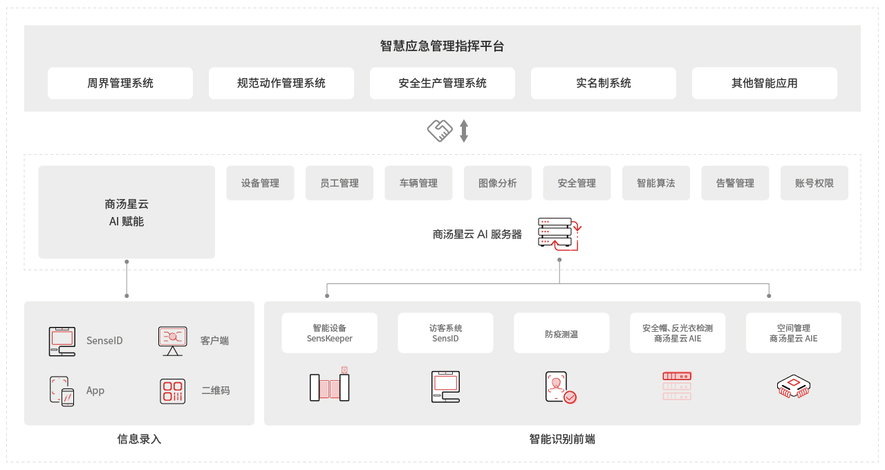 智慧应急AI管理方案主要实现对工地安全事件、危险行为、权限、环保等管理,实现工地数字化管理、提高安全要求。依托星目科技智慧应急管理指挥平台,结合尊龙凯时 - 人生就是搏!星云AIS 服务器和AIE边缘盒的AI能力及物联网技术,建设工地、加油站、工矿厂区等场景的的全新管理模式,实现劳务管理、安全施工、绿色施工。主要应用包含人员安全管理系统、车辆管理系统、劳务实名制管理系统、周界防护系统、智能预警系统、塔吊桩机管理系统、噪音扬尘监测系统、污水排放系统、智慧党建系统等。